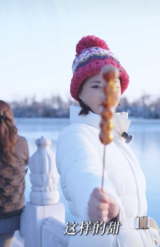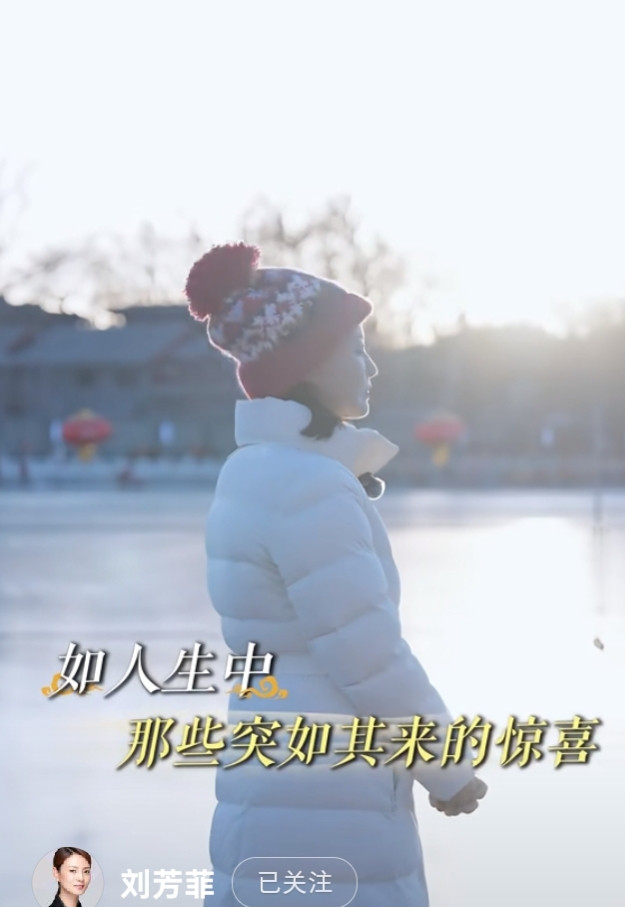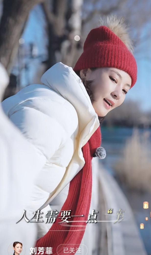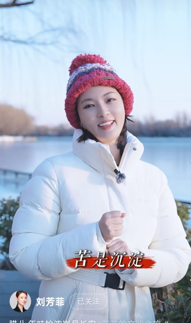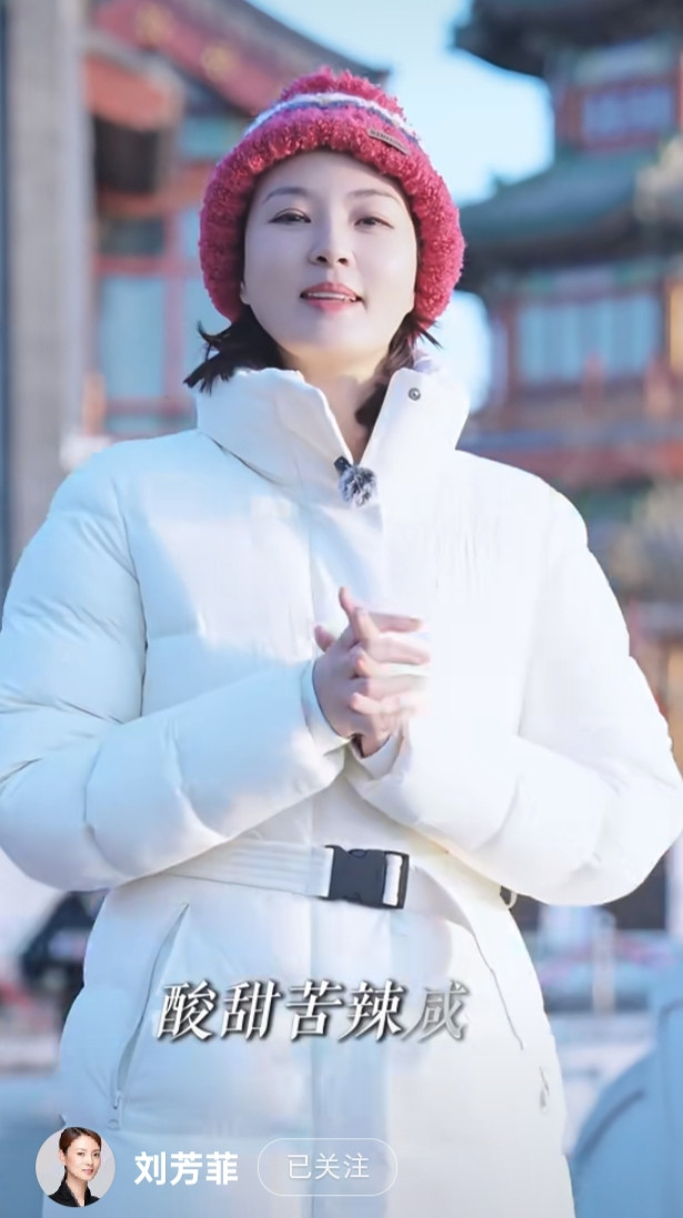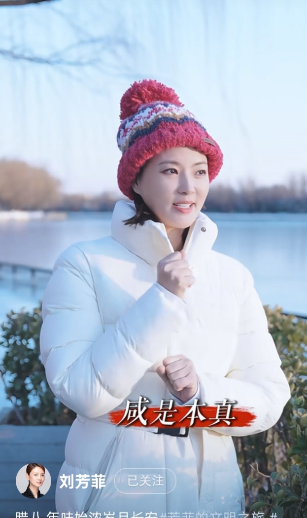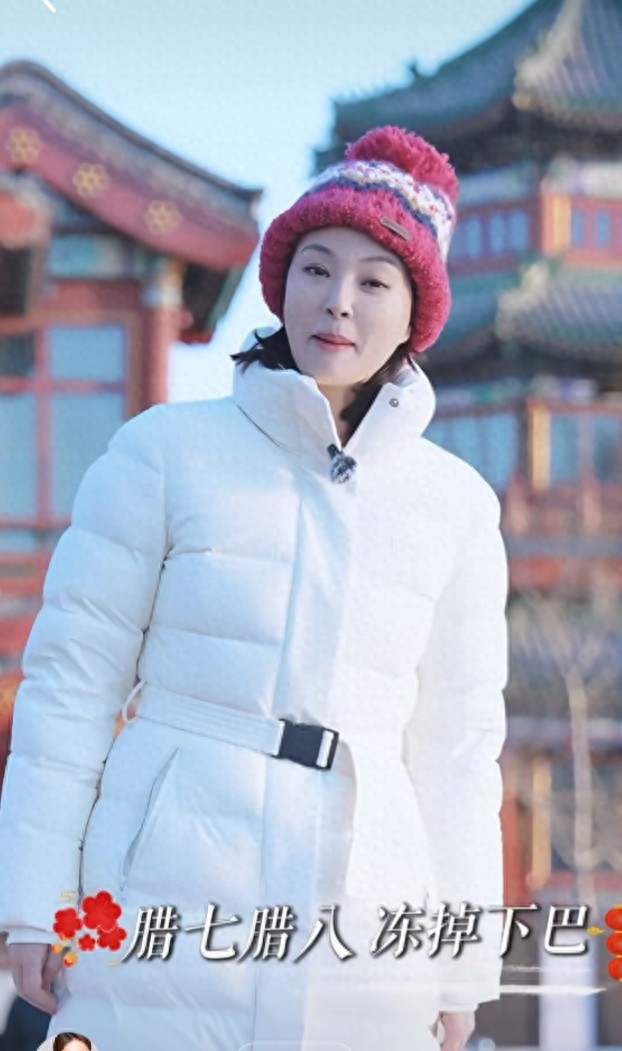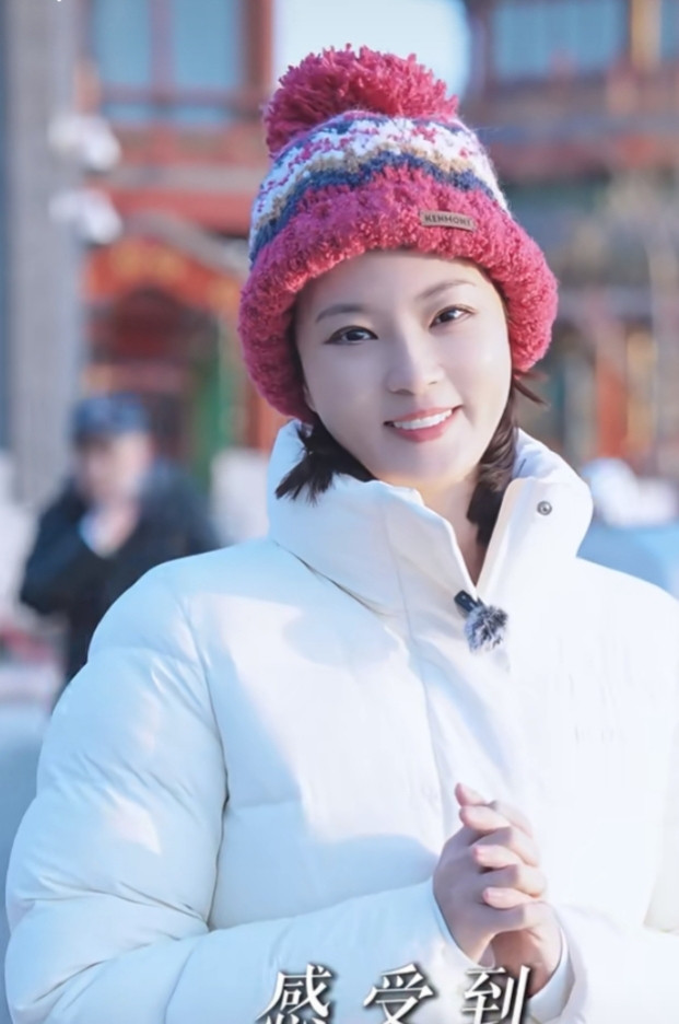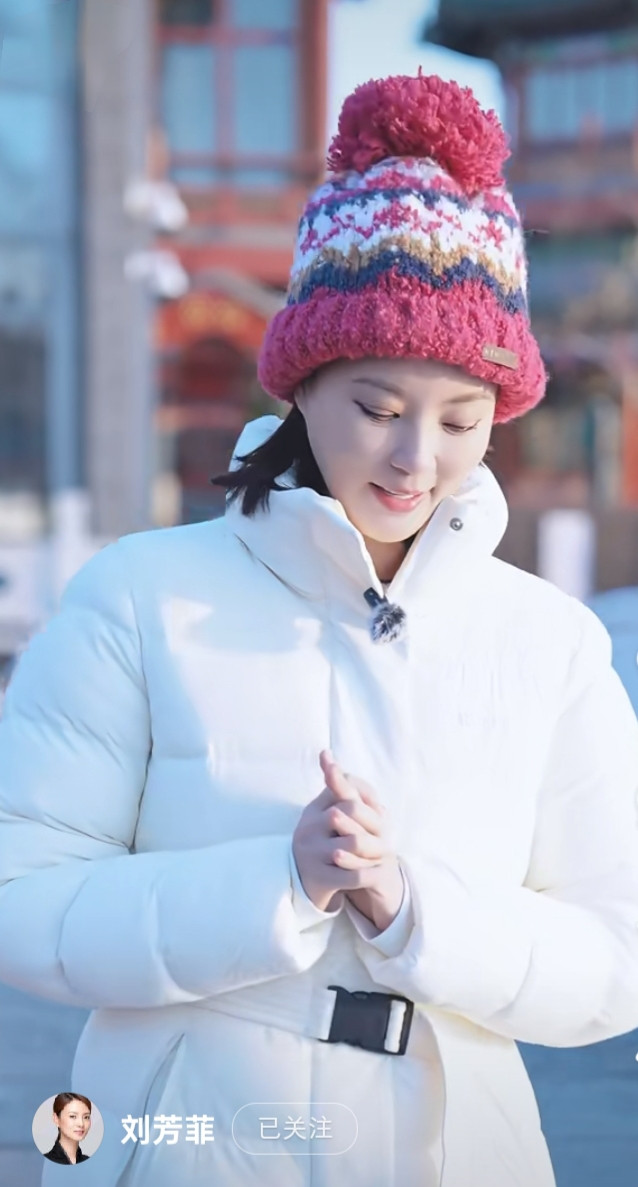 刘芳菲解读腊八, 白色羽绒服搭彩红帽, 知性优雅美得好高级